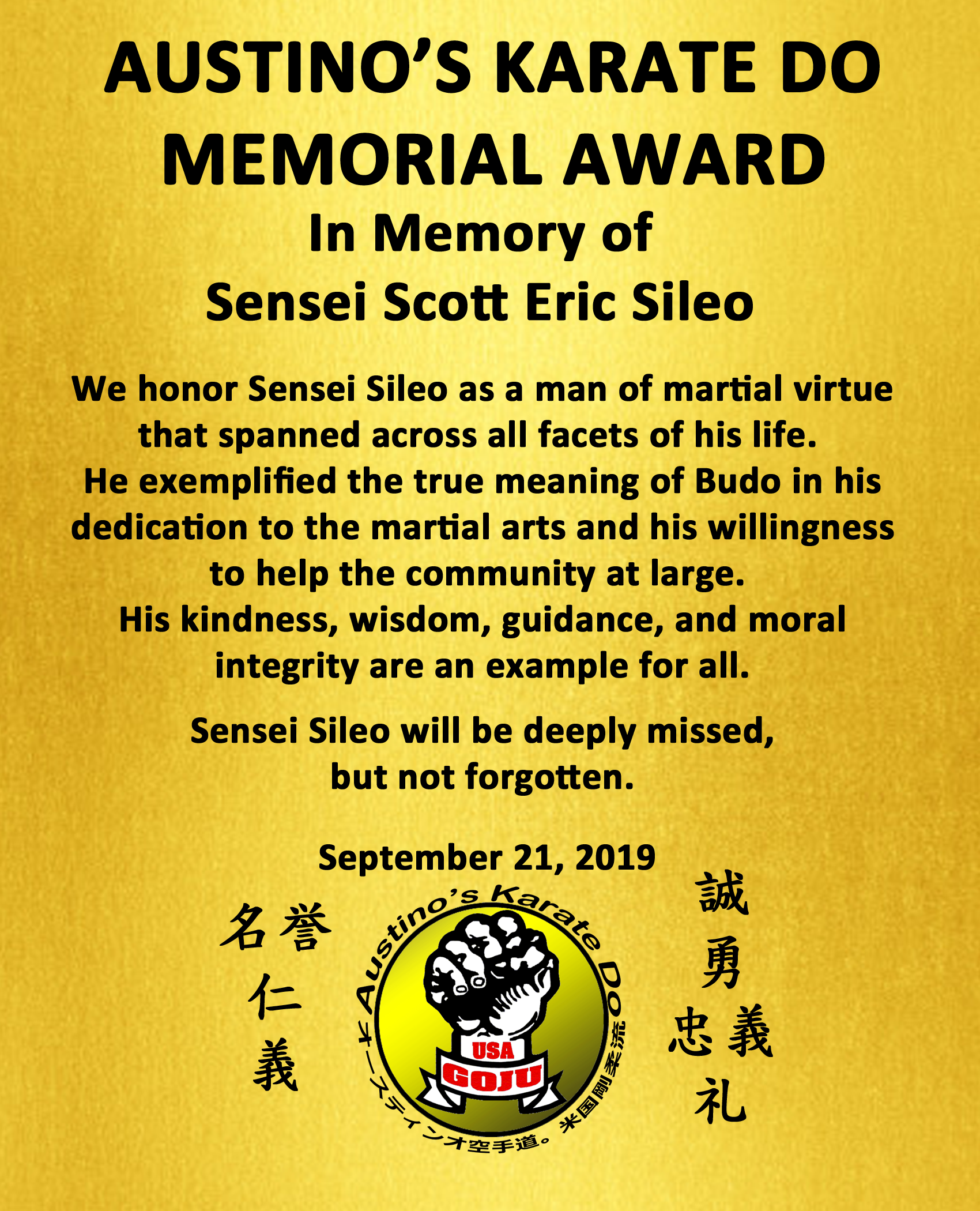 Degree Black Belt (Godan Renshi) died, Friday, April 9, 2004.